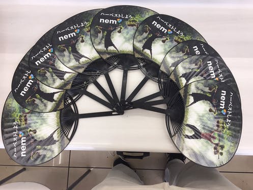 今回もうちわを配ります。 今回はnemの「ハーベスト」という機能を伝えようと思います。 今回は御堂筋沿いで配ります。