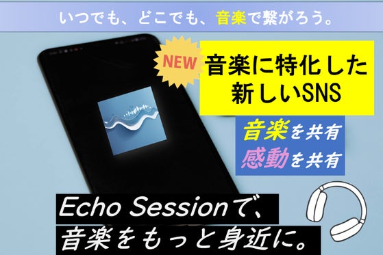 「Echo Session」~リアルタイムで音楽を共有し、日々の音楽を記録する新しい音楽体験~ 音楽が好きなあなたが、友人とリアルタイムで感動を共有できる瞬...