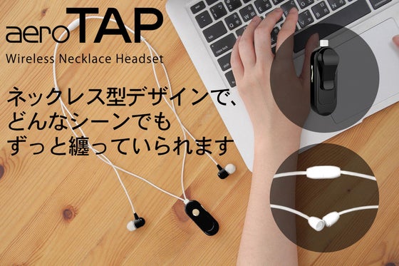aeroTAP ワイヤレス ネックレス ヘッドセット クリップ型 スタイリッシュで軽量なネックレス型 勤、スポーツ、どんなシーンでもずっと纏っていられます。