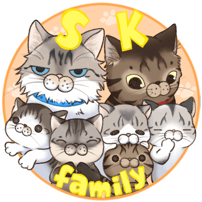 2021年12月。少し早いクリスマスプレゼントが我が家にやってきた。名前はしゃむ雄。友達以上、人間未満の関係性は、翌年には血の繋がらない家族になった。そして翌年9月、嫁猫キジ子と運命の出会いを果たした。その後、しゃむ雄とキジ子の間から、5匹の赤ちゃん猫が誕生し、7匹の猫家族になった。 にぎやかになった我が家だけれど、幸福度があがったぶん、気になることもでてきた。猫の繁殖効率は高い。猫は本能に従って妊娠・出産するため、 自分で繁殖をコントロールすることができない。そのため、すぐに避妊手術をしたけれど、日本の犬猫の殺処分の現状には目を剥いた。犬の5倍、うち6割は子猫だという。 日本でも国をあげて殺処分0を目指す動きがあるのだけれど、もし我が家の愛猫たちがそんな目にと考えたときがある。 いままではなにもしなかったけれど、少しでも殺処分0の力になれることはないかと考えた結果、このサイト「skfamily」を開業しました。 skfamilyは、しゃむ雄のSにキジ子のKの頭文字をつなげた家族たちのアルファベットで構成しています。 「skfamily」は7匹の猫家族をモデルにしたデザインを販売しています。そして 一部の利益は公益財産動物基金に寄付されます。