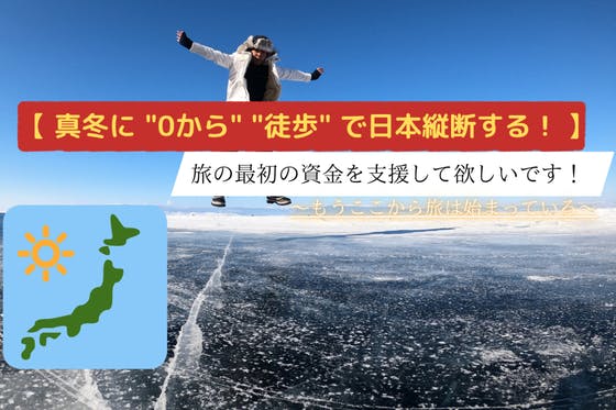 SNSを通して真冬に "0から" "徒歩" で日本を縦断する!これをテーマに、1月に沖縄の喜屋武岬から北海道の宗谷岬まで歩くことを決めました。今回はお金がなくて...