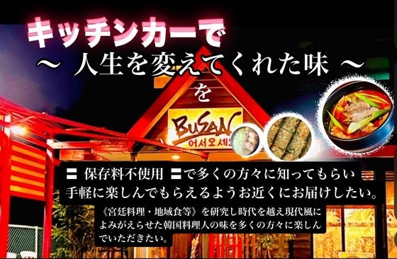 韓国の《宮廷料理・伝統の味》を学んだ【韓国料理人】の味を多くの方にお届けする為キッチンカーを作りたい