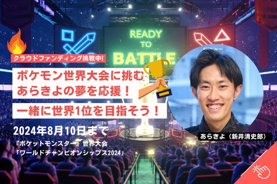 『ポケットモンスター』世界大会「ワールドチャンピオンシップス2024」に挑戦する世界チャンピオン級プレイヤーのあらきよ(新井清史郎)を応援しよう!渡航費や滞在費...