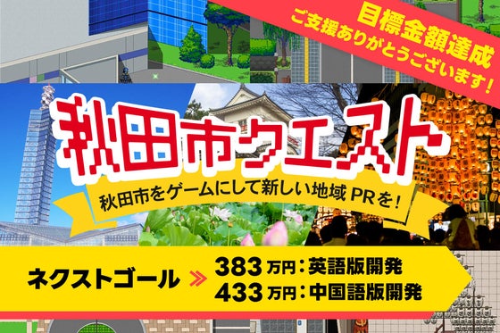 地方活性化の新たな手段として挑戦!秋田市のご当地紹介RPGゲームの制作!ゲームならではの様々なコラボも行います!広告・課金も無しで無料公開!ご支援は内容の充実の...
