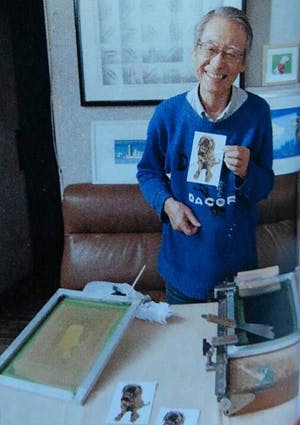 シルクスクリーン?ちょっと聞きなれないと思われますがこれは支援をお願いしました印刷の他版画の一技法でもあります。私は犬が大好きで飼い主さんのペットを版画にして大変喜ばれており、また横浜に住んでいますので港周辺の風景を版画にし好評をいただいています。サッカーの日韓ワールドカップでは横浜市長が私の作品を寄贈のため韓国に持ってまいりました。ご興味があれば下のURLを覗いてみてください