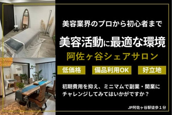 初期費用がかかるから、スキルに自信はあるけれど独立は難しい、副業で始めてみたいけど・・・そうお悩みの、エステ・マッサージ・整体等、美容系施術者さんにぜひご利用い...