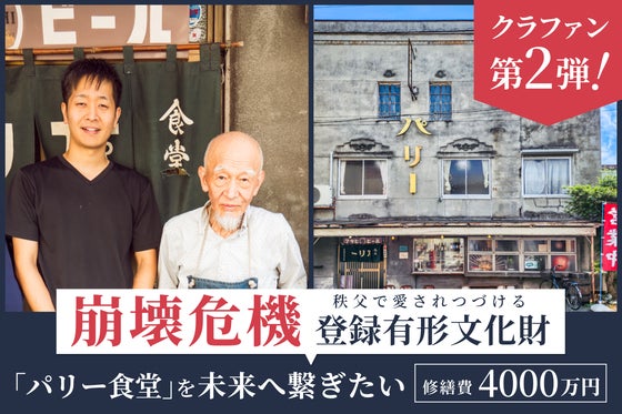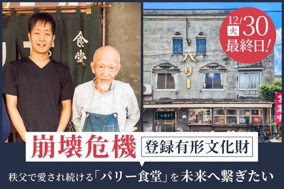 登録有形文化財「パリー食堂」は存続の危機にあります。第一弾終了後、CAMPFIRE上で「もう一度プロジェクトをやってほしい」という声が、4,047件寄せられまし...