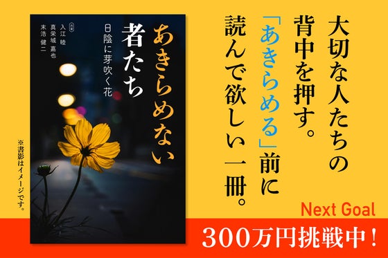 2025年3月27日に出版予定の共著書籍『あきらめない者たち〜日陰に芽吹く花〜』を広く認知させ、多くの人の背中を押すためのクラウドファンディングです!