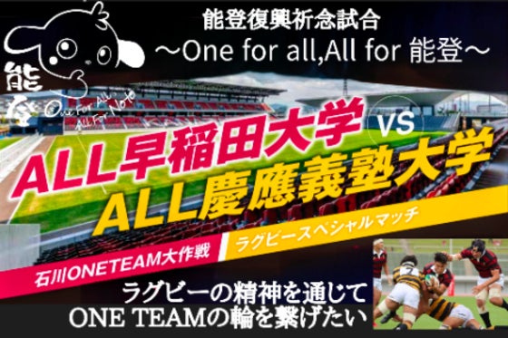 2025/3/16 金沢ゴーゴーカレースタジアムで、能登復興祈念試合として「オール早稲田vsオール慶應義塾」のラグビーの試合や石川県内のスポーツチームとのコラボ...