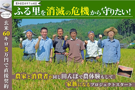 「消滅の危機にあるふる里を、米作りを続けて守りたい」中山間地域の農家と「安心安全なお米を毎日食べたい」都会の家族が玄米60kg(家庭で年間消費する大人2人分)3...