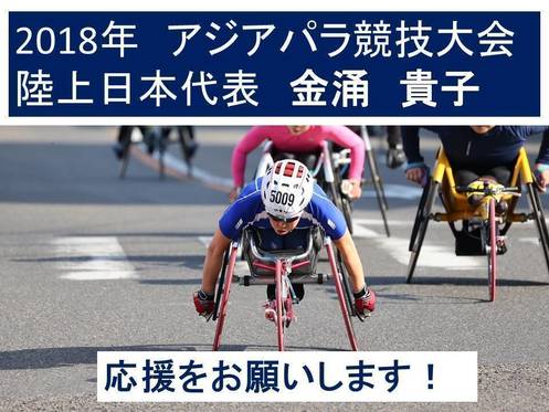 インドネシア2018アジアパラ競技大会へ日本代表選手として出場した金涌 貴子です。パラ陸上選手としてまだまだ走り抜けたいと思います。大会出場の為に、スポンサー様...