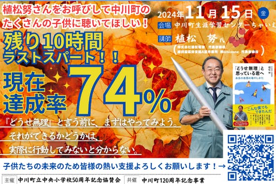 中川町立中央小学校50周年記念式典が11月15日金曜日に行われますが、その中で植松電機の社長、植松さんの講演会をお願いしております。人の可能性を奪わない社会を目...