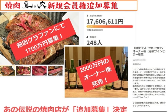 前回、クラウドファンディングにて1700万円の募集を頂きました伝説の焼肉店「虎の穴」が追加募集を決定いたしました!!今回、更なる肉の磨きとサービスを向上させた焼...