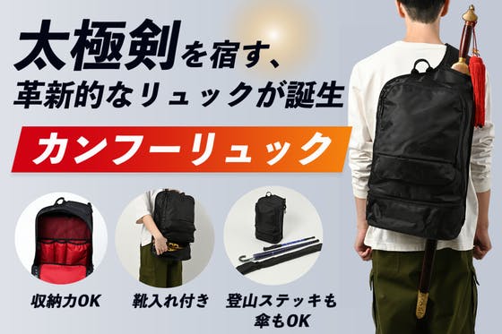 2019年、出張で訪れた台湾で"カンフーリュック"の原型に出会う。剣をリュックにさして持ち運ぶアイデアに感動。太極拳を愛好する私は即決で購入しました。便利なこの...