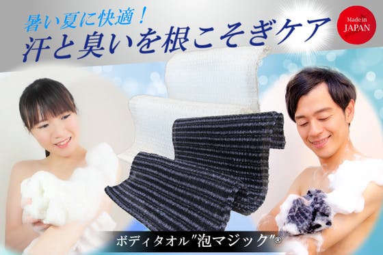 まるでホイップクリームのような細かい泡を短時間で作るボディタオル、汚れや臭いの原因となる古い皮脂や角質が激落ち。抗菌純銀糸ミューファン を使用。泡切れが良く、使...