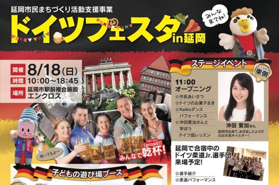 8/18に延岡駅前複合施設エンクロスを、ドイツ本場のビール・料理・音楽・スポーツ・子どもの遊びなどでドイツ色に染めます!現地から取り寄せた地ビールでドイツ流乾杯...