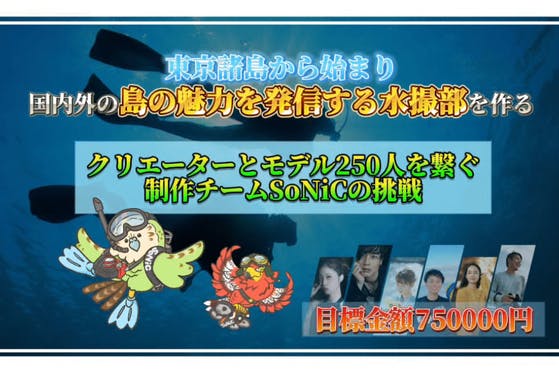 【東京諸島から始まり、国内外の島の魅力を発信する水撮部を作りたい】 目標金額は【750000円】 新たなメンバーを迎え、機材を揃え、技術を磨き国内外の島...