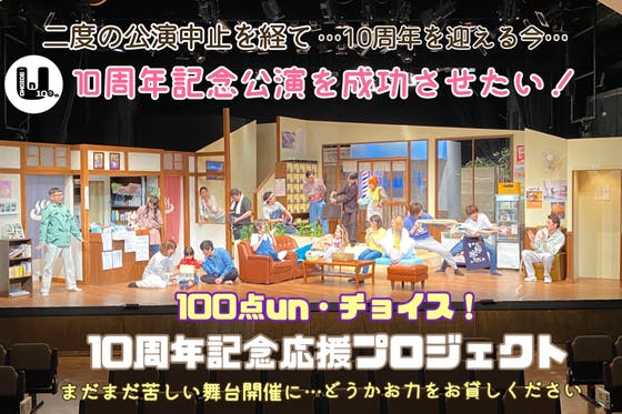 演劇ユニットとして2014年から活動を開始した100点un・チョイス!は、今年9月で旗揚げから10周年を迎えます。10周年を記念公演を成功させる為に、どうか皆様...