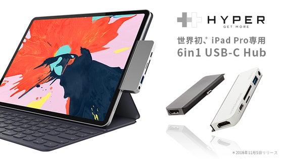 世界初のiPad Pro(2018年モデル) 専用の6in1 USB-C Hubが登場!iPad Pro(2018年モデル) にハブを確実に固定する独自開発のジ...
