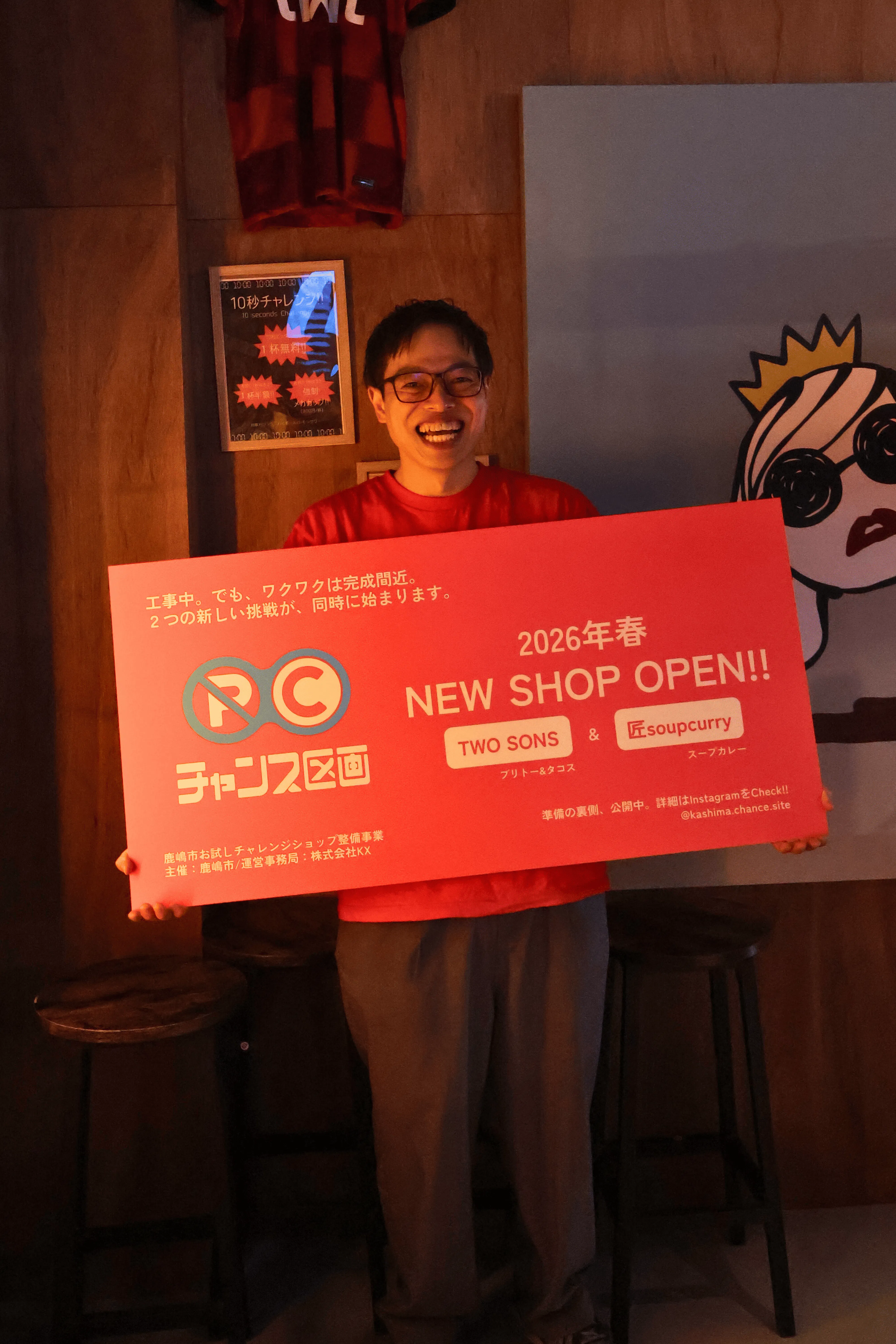 鹿嶋市出身。 スパイスと出汁に魅せられ、都内の名店「イエローカンパニー」で約2年間修行。 “食べた人の一日が、少し前向きになる一杯”を届けるため、キッチンカーでスープカレー屋「匠soupcurry」を開業予定。 鹿嶋市チャレンジ支援拠点「チャンス区画」から、まちと一緒に育つお店を目指しています。