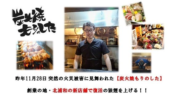 2018年11月28日、近隣から出火した火災によるビル全焼で突然の無期休業状態に追い込まれた北浦和【炭火焼もりのした】が、2019年初春に不死鳥の如く復活いたし...