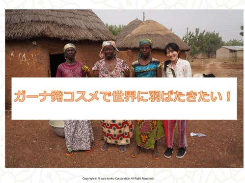 皆さんはじめまして!ガーナ産の高品質オーガニック原材料を使用したコスメブランドを立ち上げ、今年4月の販売を目指している株式会社N yura konkoの代表の相...