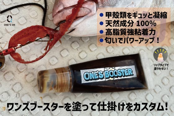 《 ささッと塗って釣果UP!? 》リグ( 仕掛け )に匂いを塗ってカスタマイズ。甲殻類凝縮天然100%!『ONE'S BOOSTER』