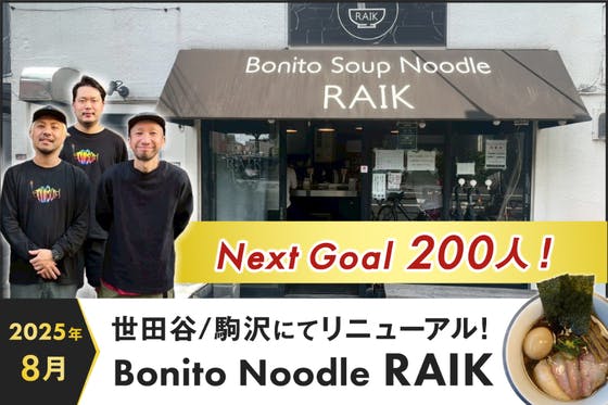 永福町で愛された「ボニートスープヌードルライク」が、老朽化に伴い世田谷駒沢へ移転。「ボニートヌードルライク」として変わらぬ味と更なる情熱を新天地で届けるため、ク...