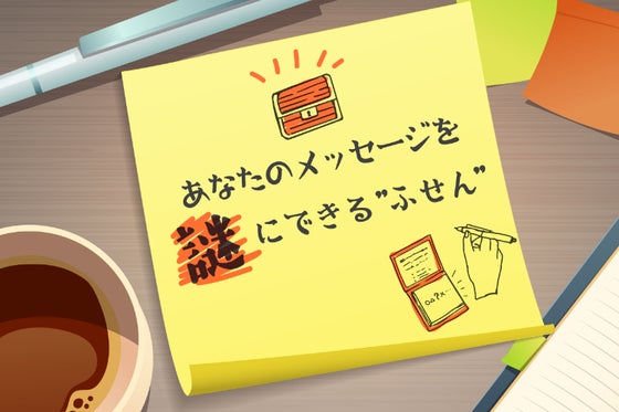 【お宝ふせん】は、あなたのオリジナルメッセージを謎や暗号に変換できるふせんです。ちょっとした書置きや添え文を謎にして、宝探しのワクワクを体験しませんか?