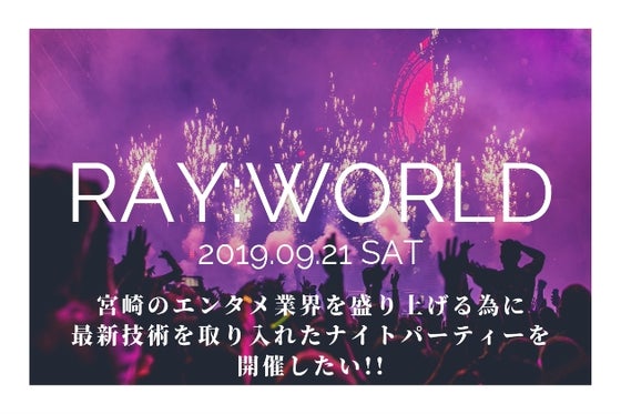 宮崎のエンターテインメント業界を更に盛り上げるべく、全国で流行中の最新技術など取り入れ質の高い全く新しいナイトパーティーを開催し、宮崎で新たなエンターテインメン...