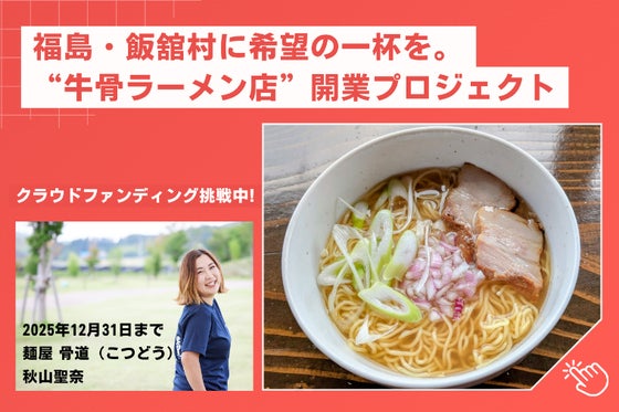 福島県飯舘村で、地元・飯舘産黒毛和牛の骨を使った「牛骨ラーメン店」を開業します。 原発事故による全村避難から立ち上がるこの村に、温かい一杯とにぎわいを届けたい...