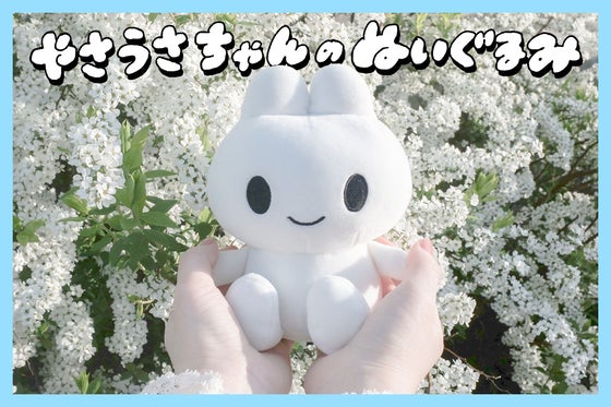 やさしい たのしい みんなの友達 。クリームソーダが好き。TwitterやLINEスタンプで人気の「やさうさちゃん」グッズ製作プロジェクト!おすわりができるぬい...