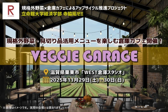 2025年11月29日(土)・30日(日)、滋賀県栗東市にある「WEST倉庫スタジオ」にて、倉庫のカフェ空間で規格外・見切り品活用メニューを楽しむイベント「VE...