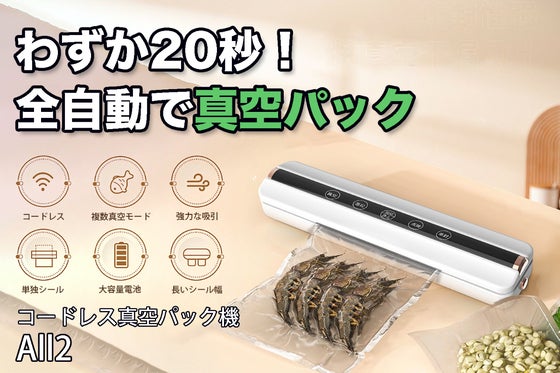 1,ボタン1つで自動で真空パック!食材を新鮮に保存可能!2,3つの真空モード搭載で粉類・液体にも対応! 3,30cmシーリング幅で複数袋を同時密閉。コードレス使...