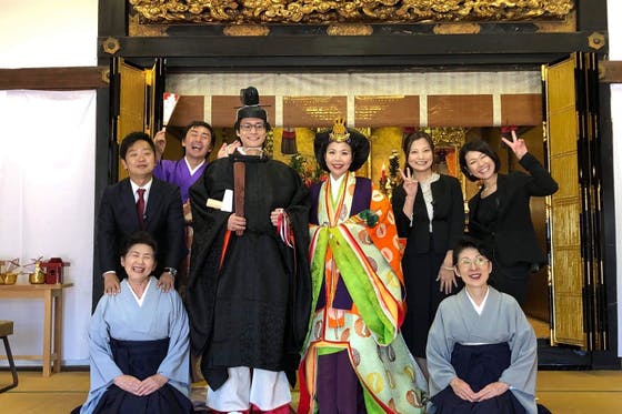 津市一身田町の、国宝の御堂ある高田本山専修寺にて公募で選んだカップルに結婚式を挙げて、人力車に乗って町をパレードしてもらいます。町のみんなでお二人をお祝いをして...