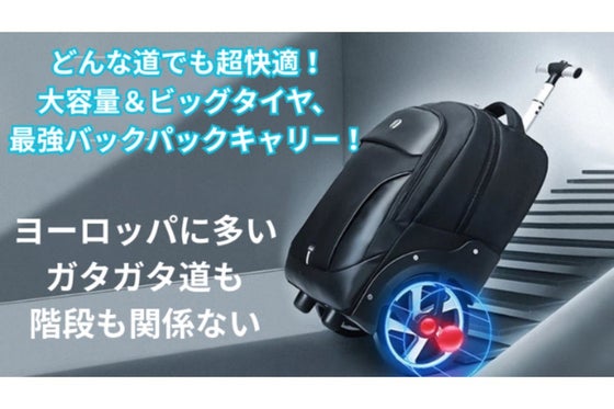 背負うことに疲れたらキャリーとして使える。 しかも大きなタイヤなので楽々運べる。 旅行に!ビジネスに!