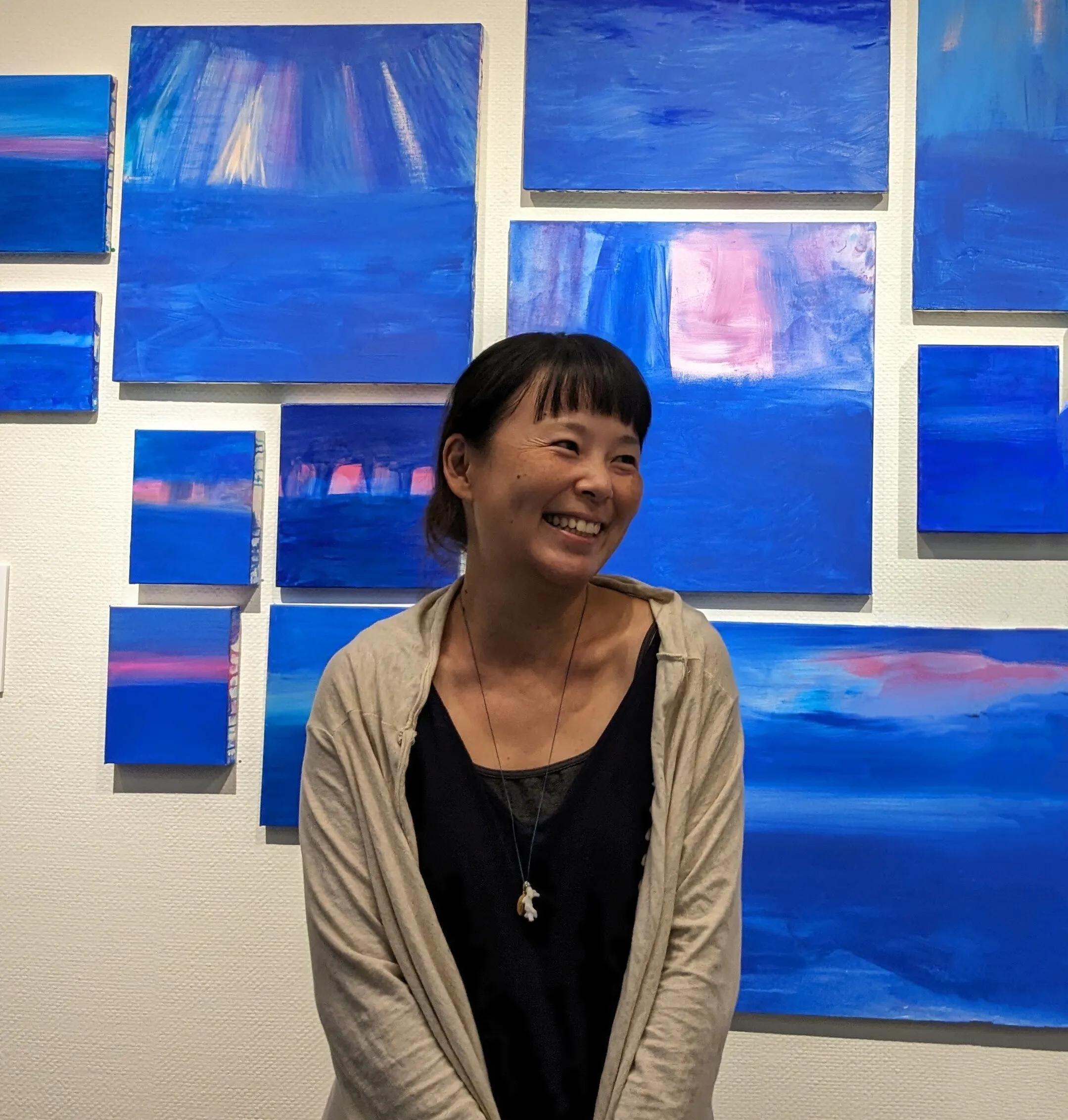 飯田朋美(いいだともみ) `ano`ai(あの、藍) 青い光のアーティスト 本建て正藍染め作家 2016年に紺邑の大川公一氏のもとで正藍染めを学ぶ。 2023年に、茨城県・小貝川のほとりの古い紺屋跡地にて本格的に活動を始める。 2023年4月、埼玉県越生町の「山猫軒」にて初の個展『あの、藍展』を開催。 7月、大阪池田「cafe gallery Phteah」にて行われた『本建て正藍染展 SHO-AIZOME Exhibition』に参加させていただく。 9月、青山Spiral garden にて行なわれた、山崎美弥子展『DAWN-kind of blue YAMAZAKI MIYAKO with / 360° 2023』の会場インスタレーションに参加させていただく。 藍染めの他にも、古い着物や布を活かした衣作りや植物染めの講習会を開催。また女性の体や気持ちに寄り添った講座、商品などをつくっている。 正藍染めの青の美しさと、色移りしない、色落ちしにくい、生き物・環境に優しいなどという特徴に感動し、今も学びを深め続けている。 すべての命が、自分は光の存在であり、至福の領域に居続けてよいのだと思い出すために、そして忘れないように、との氣持ちを込めて青(ao)を染めている。(ao=ハワイ語で「光」を意味する。)