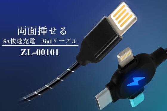 ・USB-Aはリバーシブル設計で両面挿し可能・急速充電とデータ転送を同時に実行可能・Micro USB、Lightning、type-C、3ポートを搭載、幅広い...