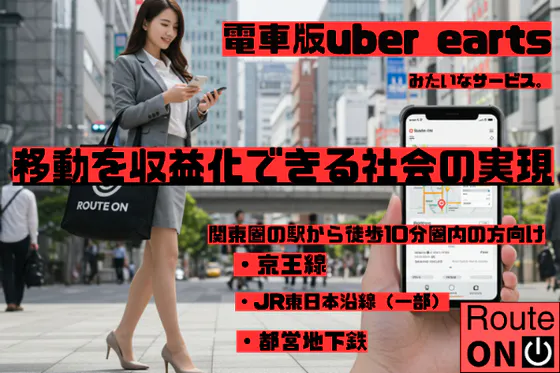 〇実現したいこと ・電車版uber eartsみたいなサービスのモバイルアプリ、SaaSの開発 ・配達パートナー様と依頼者様の集客 ○目的・移動を収益化できる...