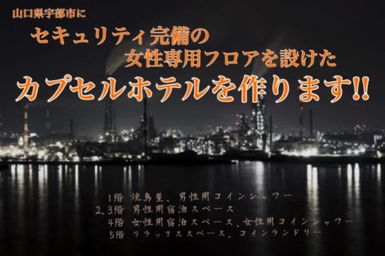 山口県宇部新川駅から徒歩5分。宇部市で初の女性専用フロアを設け、セキリティキーで安心設計。モダンで落ち着いた雰囲気あるカプセルホテルへリニューアル。ビルは購入済...