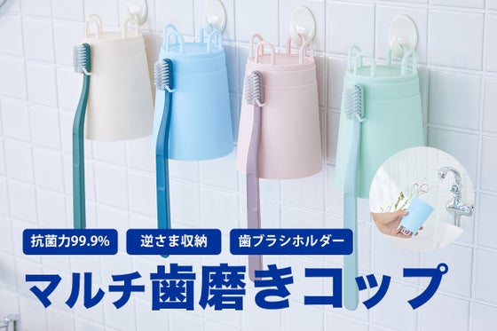抗菌力99.9% & 逆さま収納。歯ブラシホルダーまで!「マルチ歯磨きコップ」
