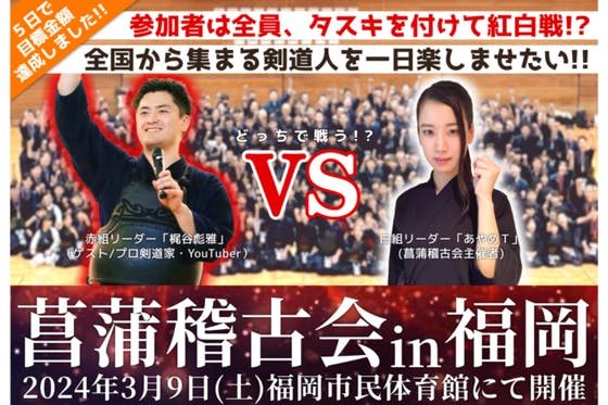 開始5日で100%達成!! 参加者全員が紅白タスキをつけて参戦!? 実力・段位等関係なく、子供から大人まで参加できる「菖蒲稽古会」を3月に福岡で。事前交流から始...