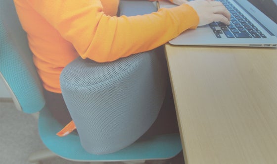 「Hiijii(ひーじー)」は、長時間のデスクワーク、スマホ操作時の疲労を軽減します。 肘を乗せたり、腰に当てて背筋を伸ばしたり。 体を支えて正しい姿勢に導きます。