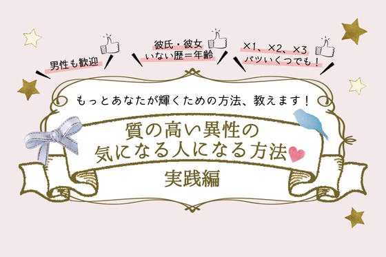 数多くの悩める女子をピカピカの素敵女子に生まれ変わらせた実績のある、幸せを呼び込む達人によるワークショップ。片想い中の人も、新しい出会いを見つけたい人も、バツイ...