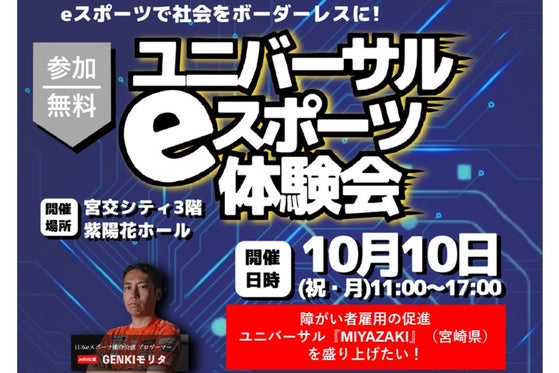10月10日「スポーツの日」に障がい者雇用の促進 ユニバーサル『MIYAZAKI』(宮崎県)を盛り上げたい! 日本障がいeスポーツ連合(JeSU)公認のプロゲ...