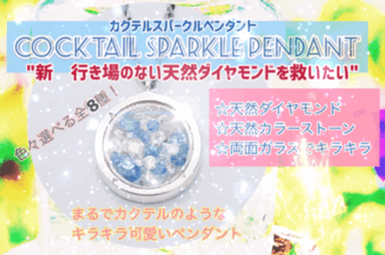 まるできらめくフルーツカクテルを思わせる可愛いペンダント!時計用ガラスを使いキラキラ天然ダイヤモンドと天然カラーストーンをポップに閉じ込めました!キャンプファイ...