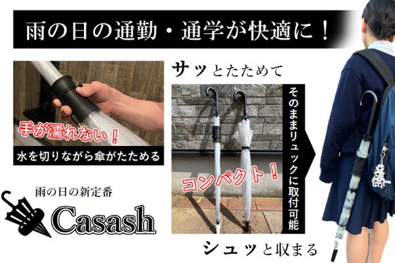 手を濡らさずに水を切る傘ホルダー!リュックに取付可能でハンズフリーを実現! 片手が不自由でも簡単に! 傘を使う日の「不便・不快・不安」を解決する!