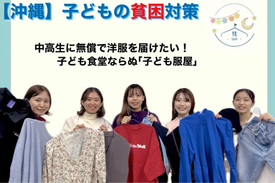 3.3人に1人が貧困の沖縄。彗(sui)は、沖縄の中高生の子どもたちに無料で服を届けたい、子どもたちと繋がれる場を作りたいという思いで活動しています。 服なしに...