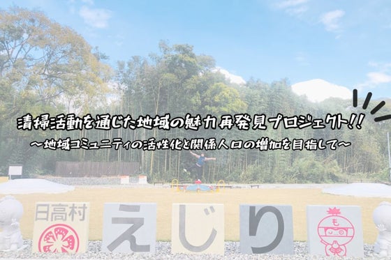 日高村江尻地区親水公園の清掃活動を通じて地域の魅力の再発見、地域環境の保全を行う中で、地域コミュニティの活性化と関係人口の増加を目指す。