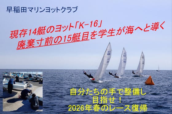 日本に現存14艇しかない希少なヨット「K-16」。廃棄寸前で発見された15艇目を、早稲田マリンヨットクラブの学生が自ら整備し、2026年春のレース復帰を目指しま...